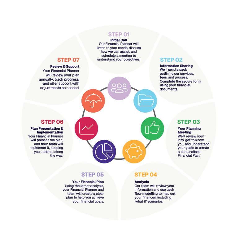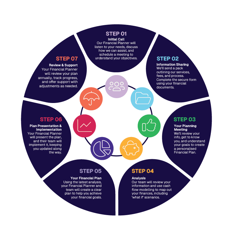 With our 7-step process, at the start of our journey, it is important to fully understand your goals so we can form a Financial Plan tailored exactly to your lifestyle and needs.
